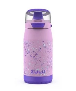 The ZULU Flex SS 12oz Stainless Steel kids water bottle features a powder coat finish to prevent scratches, as well as an overmolded boot to protect the base of the product. Its one touch, leak-proof locking flip lid makes it simple to hydrate quickly. It features an integrated overmolded carry loop that makes it easy for any kid to bring with them on-the go. Flex’s food-grade silicone spout with antimicrobial Guardian Technology inhibits bacterial growth on the drink surface. All parts are BPA-free and dishwasher safe, and there is no need to remove the silicone for cleaning. Do not freeze or microwave. It is not recommended for children under 3 years old. Patents pending.