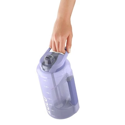 The ZULU Goals Half Gallon Plastic Water Jug helps you reach your hydration goals. Its motivational time markings help track liquid intake throughout the day to ensure you drink enough water. A silicone straw spout is infused with Guardian Antimicrobial Technology that inhibits bacterial growth on the drink surface. Flip open a one-touch lid that keeps the straw clean and makes drinking easy and comfortable. Its large 64oz lets you drink all day with fewer fill-ups and a portable handle allows for easy on-the-go use.